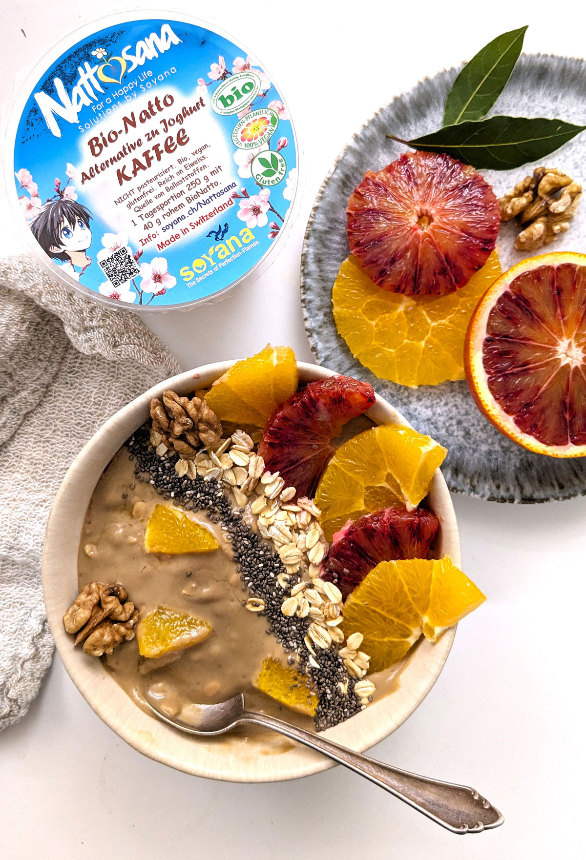 Mein Lieblings-Natto ist der Nattosana Kaffee-“Joghurt”. Ich liebe ihn z.B. mit 2 EL Haferflocken, 1 TL Chiasamen (nicht eingeweicht!) und kleingeschnittenen Orangenschnitzen vermischt – das kann ich täglich genießen! Nattokinase wurde mir als Sportlerin schon lange empfohlen, um die Adern frei und Herz-Kreislauf gesund zu erhalten, aber ich bin kein großer Fan von Kapseln und Tabletten. Es ist toll, jetzt mit dem natürlichen BioNatto von Soyana – mit ca. 7% Eiweiss, Vit. K2 etc. – Herz-Kreislauf, Darm und auch den Knochen etwas Gutes tun zu können, gerade wenn man über 60 ist und noch einiges vorhat!